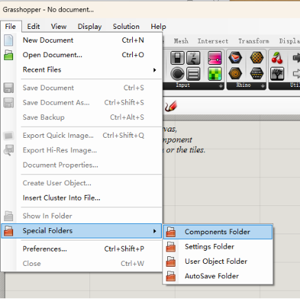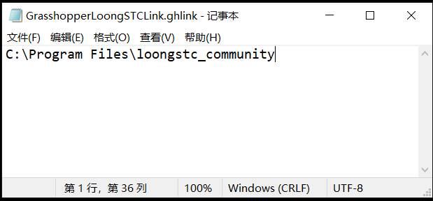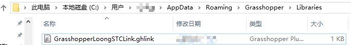 - 在打开的 “Components Folder” 文件夹中,新建一个文本文件命名为 “GrasshopperLoongSTCLink.ghlink”,文本内容替换成当前使用的龙宫STC软件的安装目录,然后保存文件并退出。