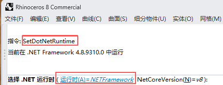 - 在犀牛软件命令窗口,输入指令 “SetDotNetRuntime” 回车。